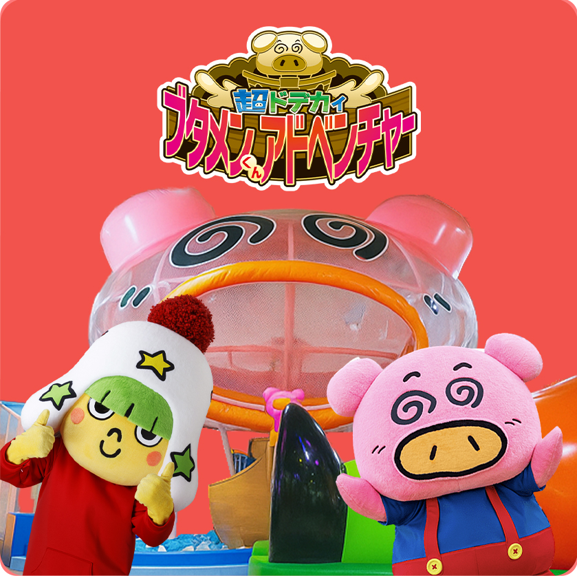 「ホシオくんドデカイスライダー」「超ドデカイ ブタメンくんアドベンチャー」など、おやつタウンのアトラクションで、子どもたちは夢中で走り回り、親御さんも一緒に体を動かしてリフレッシュ!
