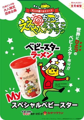 | ベビースター手作り体験&お買い物コース | おひとり様(13歳〜69歳) | 2,000円 ※バリュー日は1,400円  |