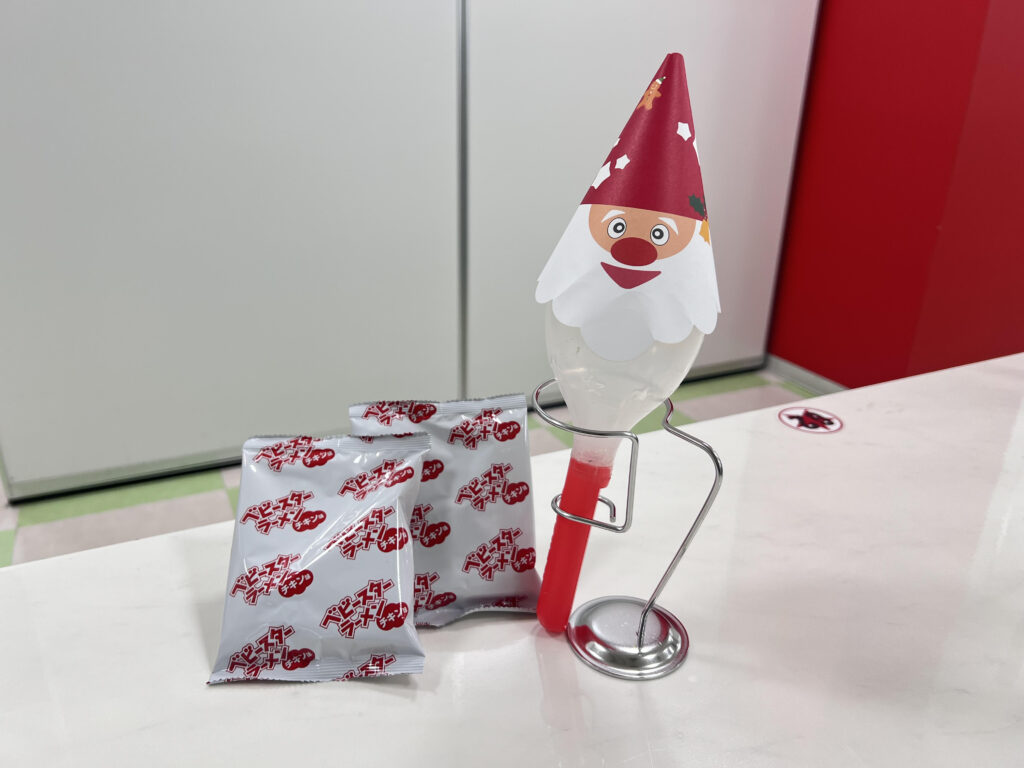 体験プログラム「フリフリ♪ベビースター」は、サンタさんのペーパークラフトがついた特別バージョンで登場します。