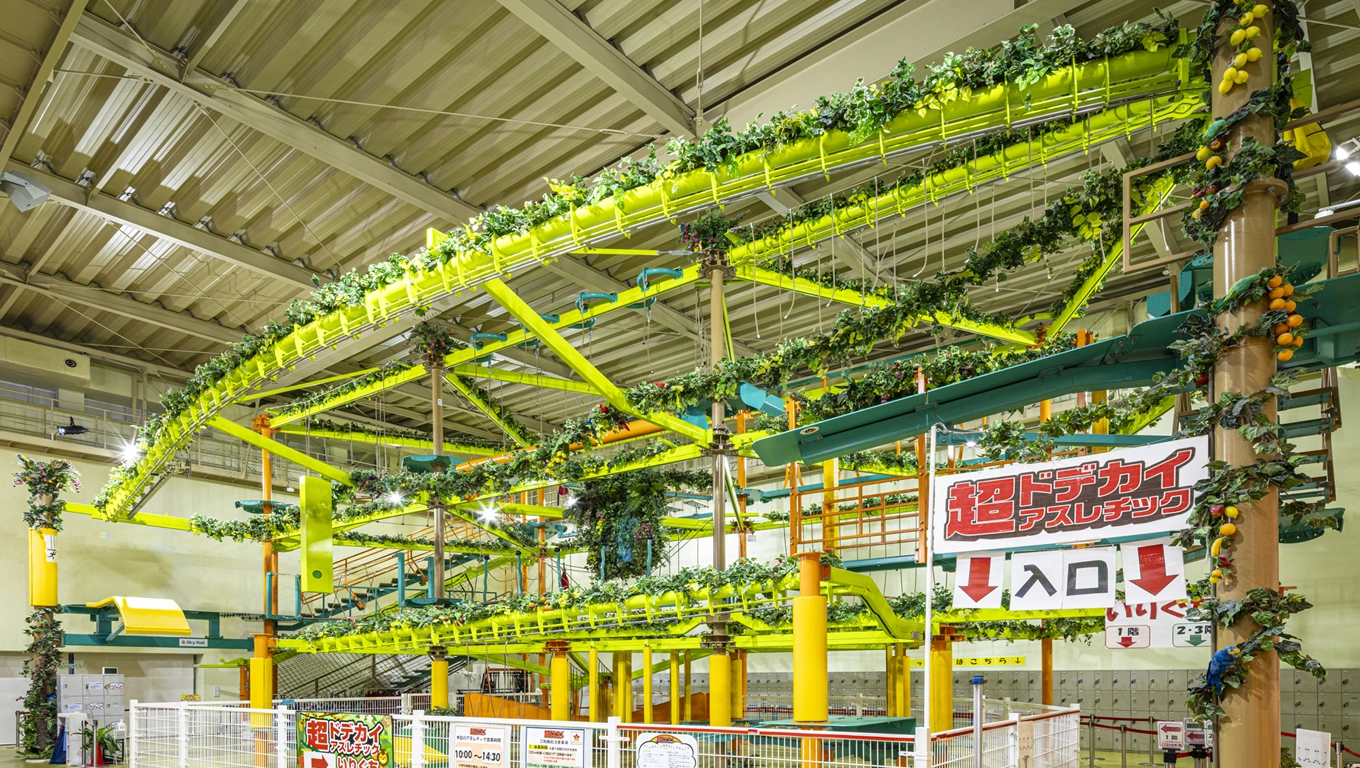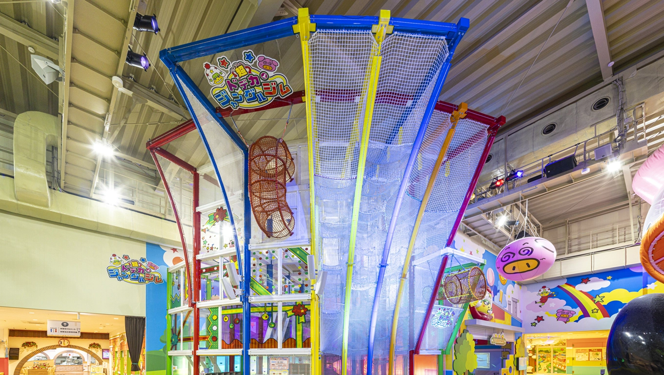 ワクワクが止まらない! 子どもも大人も夢中になれる、3フロアの巨大屋内アスレチック!1階は元気いっぱいのキッズ向け冒険エリア、2・3階はスリル満点!子どもはもちろん、大人も本気で楽しめちゃう!