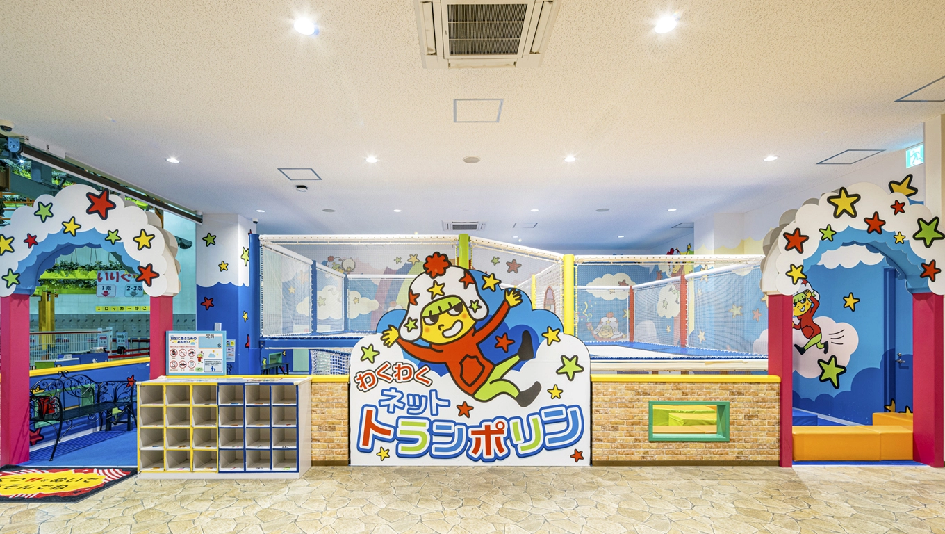 ネットトランポリンで、ぴょんぴょんジャンプ!ふわふわ揺れる感覚に、笑い声が止まらない! とんだり、はねたり、くぐったり、全力で楽しもう!