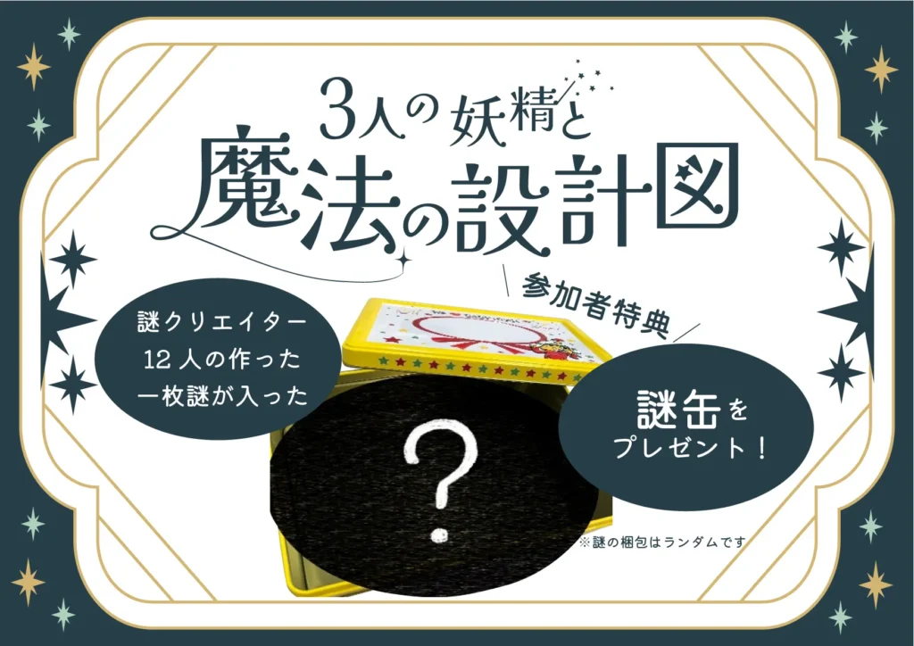 見事、「3人の妖精と魔法の設計図」をクリアした方には、1枚謎が詰まった「謎缶」をプレゼント!