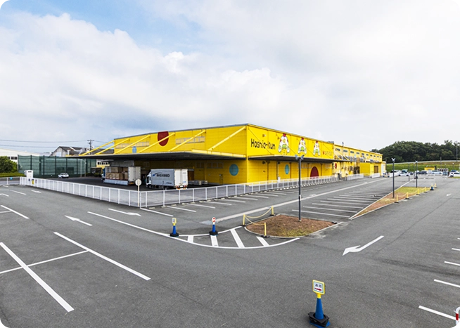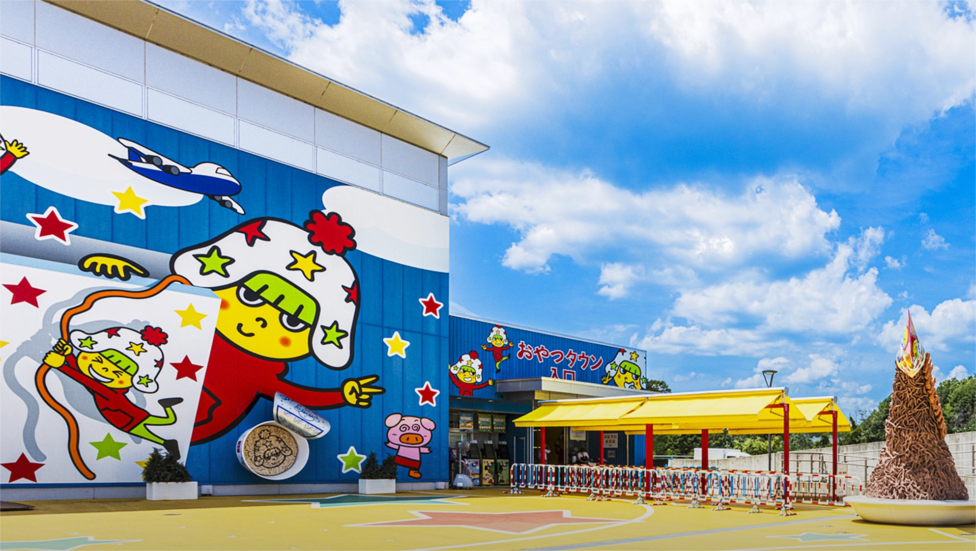 おやつタウンの建物を左手に見て、真っすぐ進むと「おやつカンパニー森工場」が見えてくるので、そこを曲がると「おやつタウン駐車場」があります。