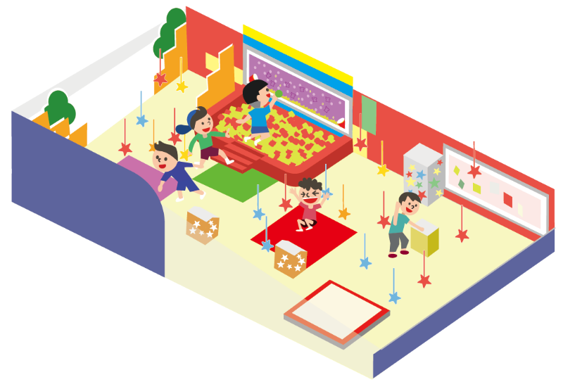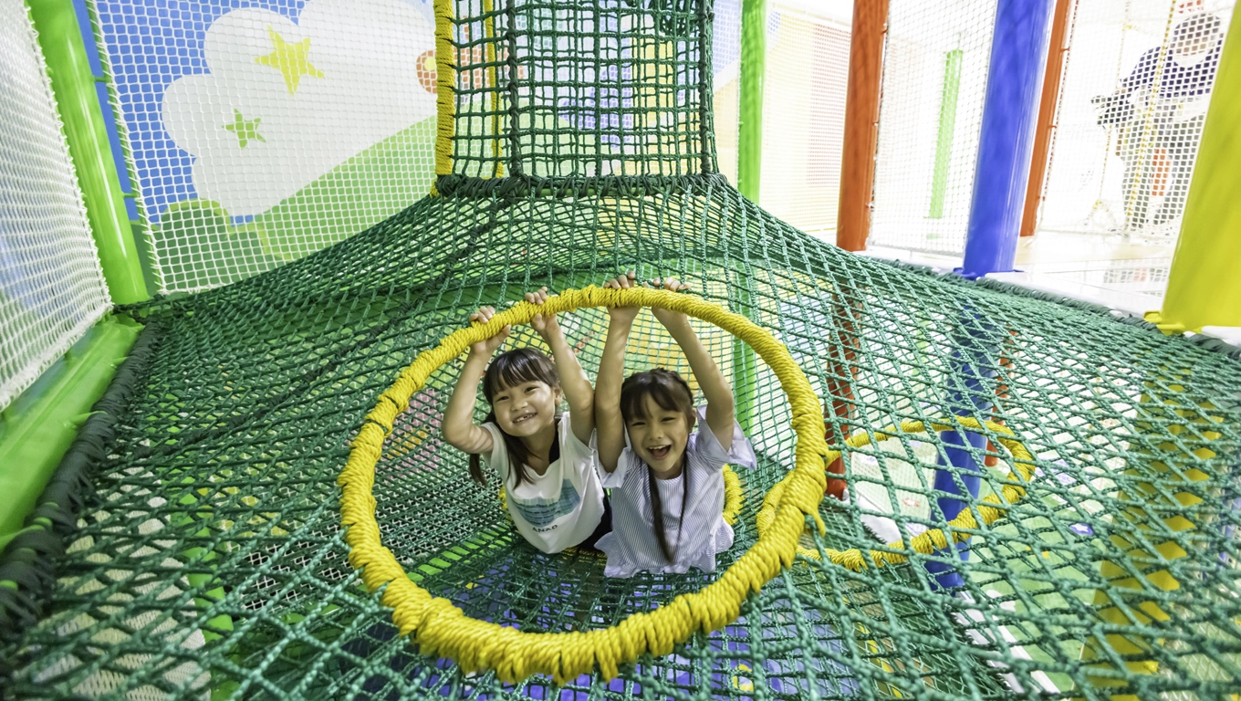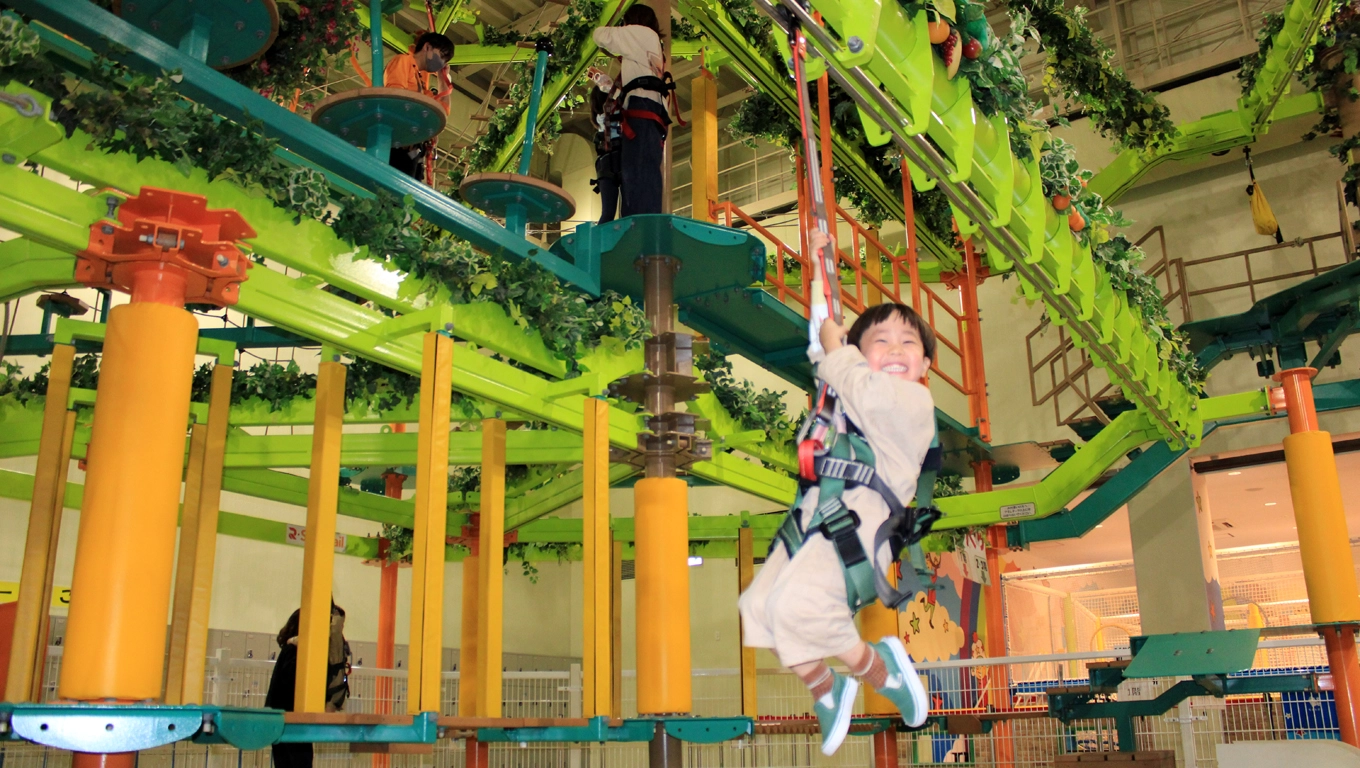 ワクワクが止まらない! 子どもも大人も夢中になれる、3フロアの巨大屋内アスレチック!1階は元気いっぱいのキッズ向け冒険エリア、2・3階はスリル満点!子どもはもちろん、大人も本気で楽しめちゃう!