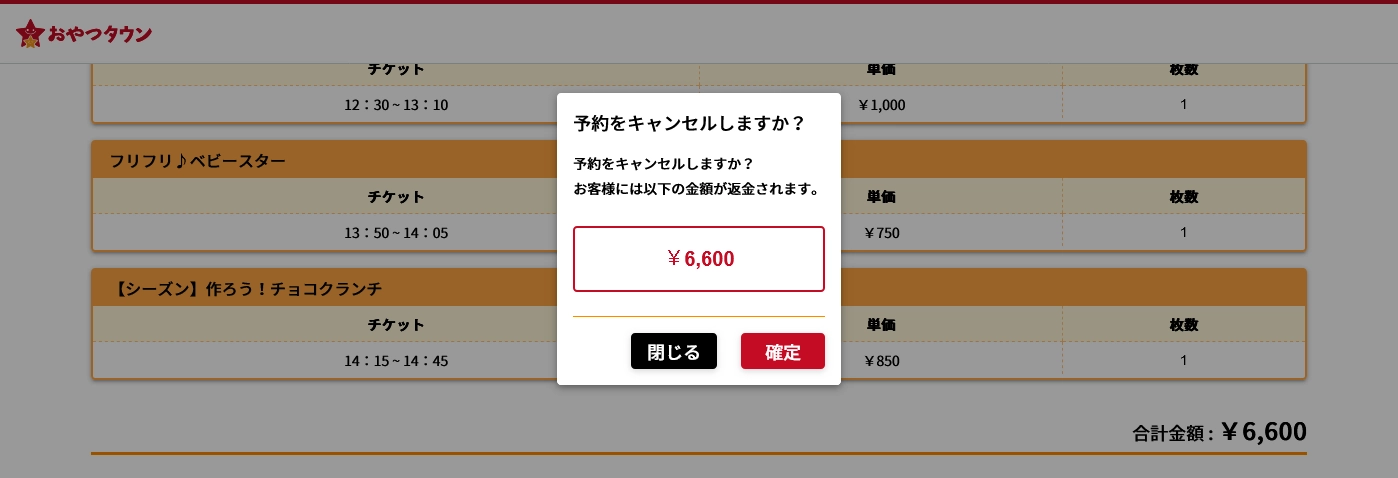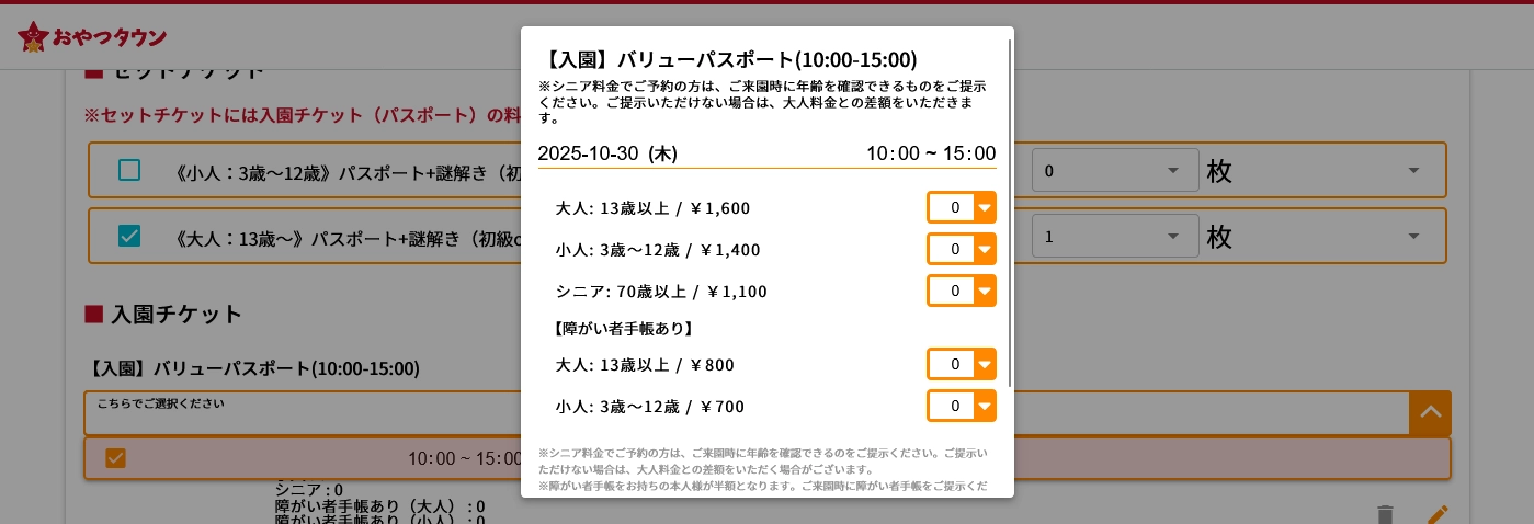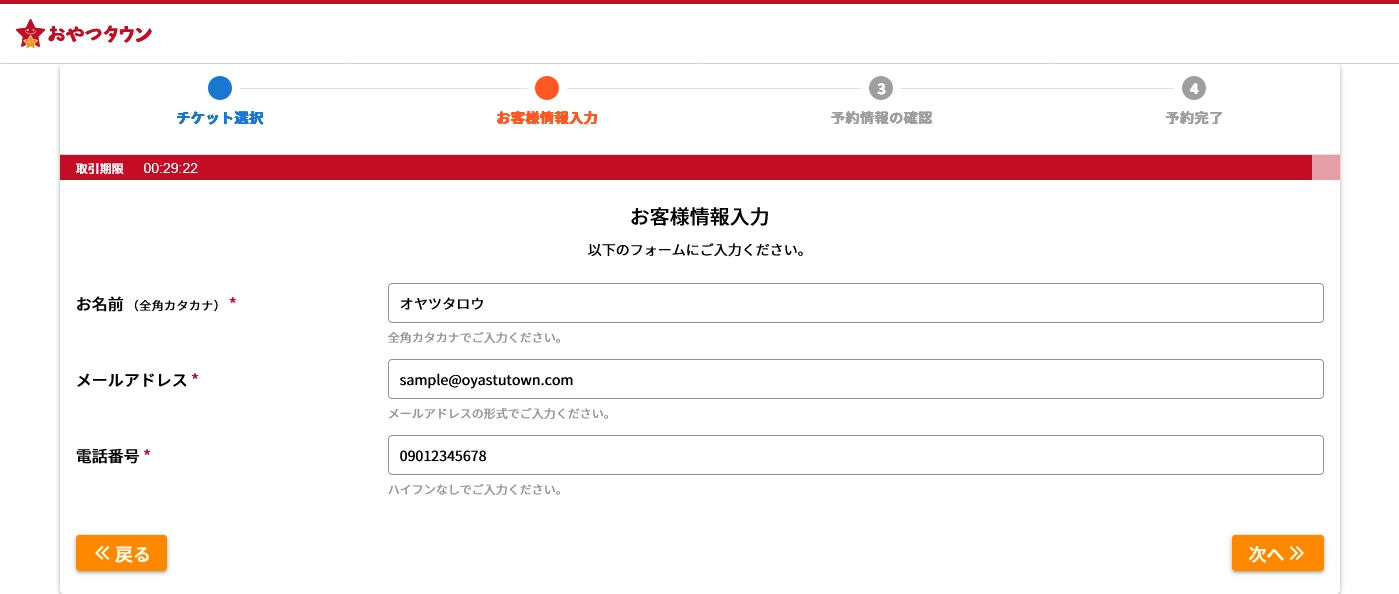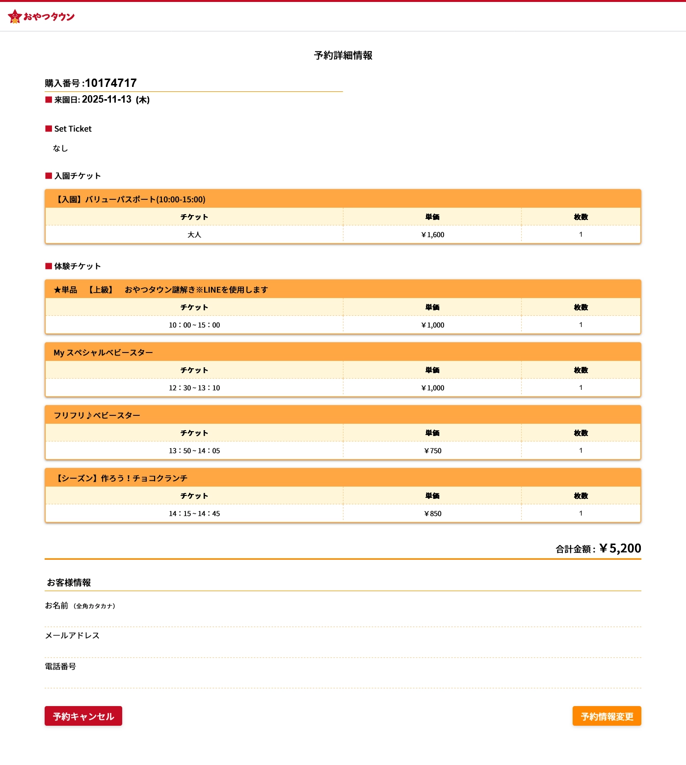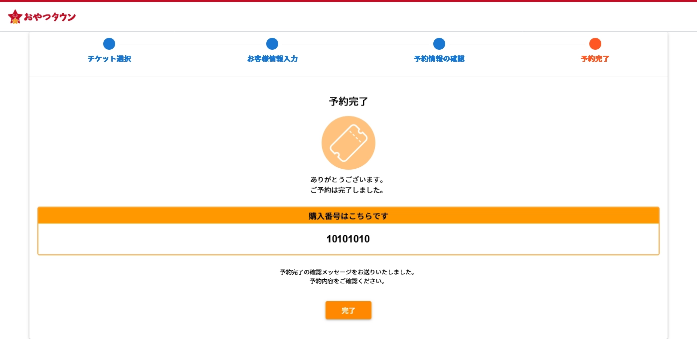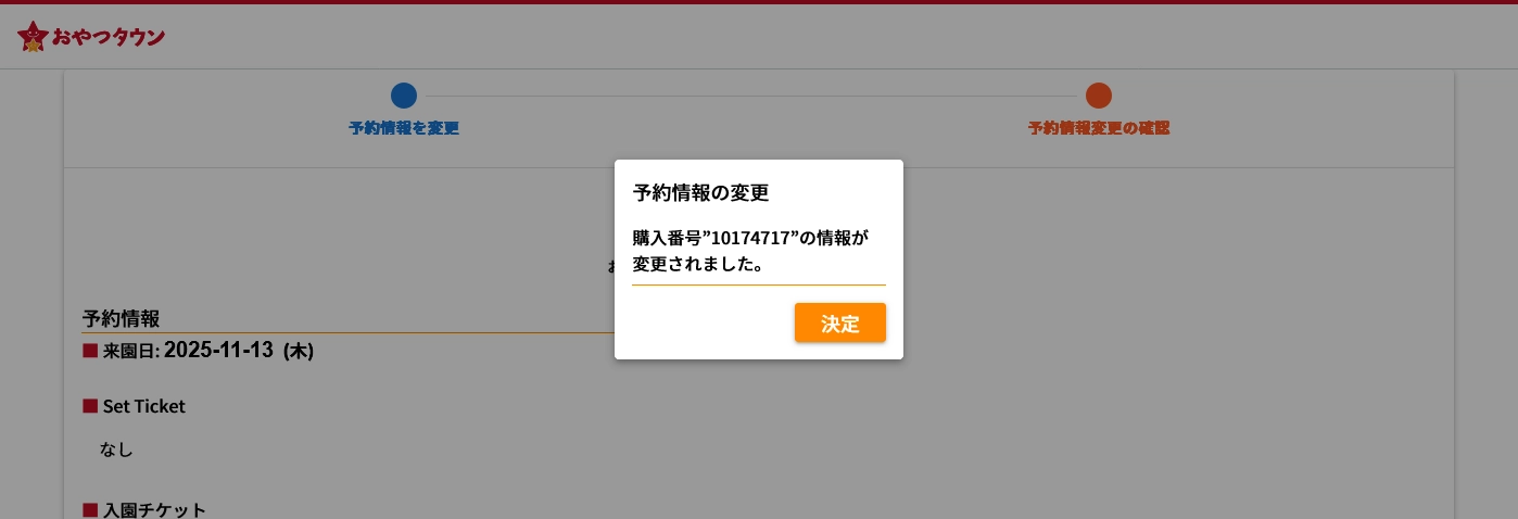 「おやつタウンの予約はこちら」を選択してください。事前予約はご来園日の前日24時まで受け付けいたします。