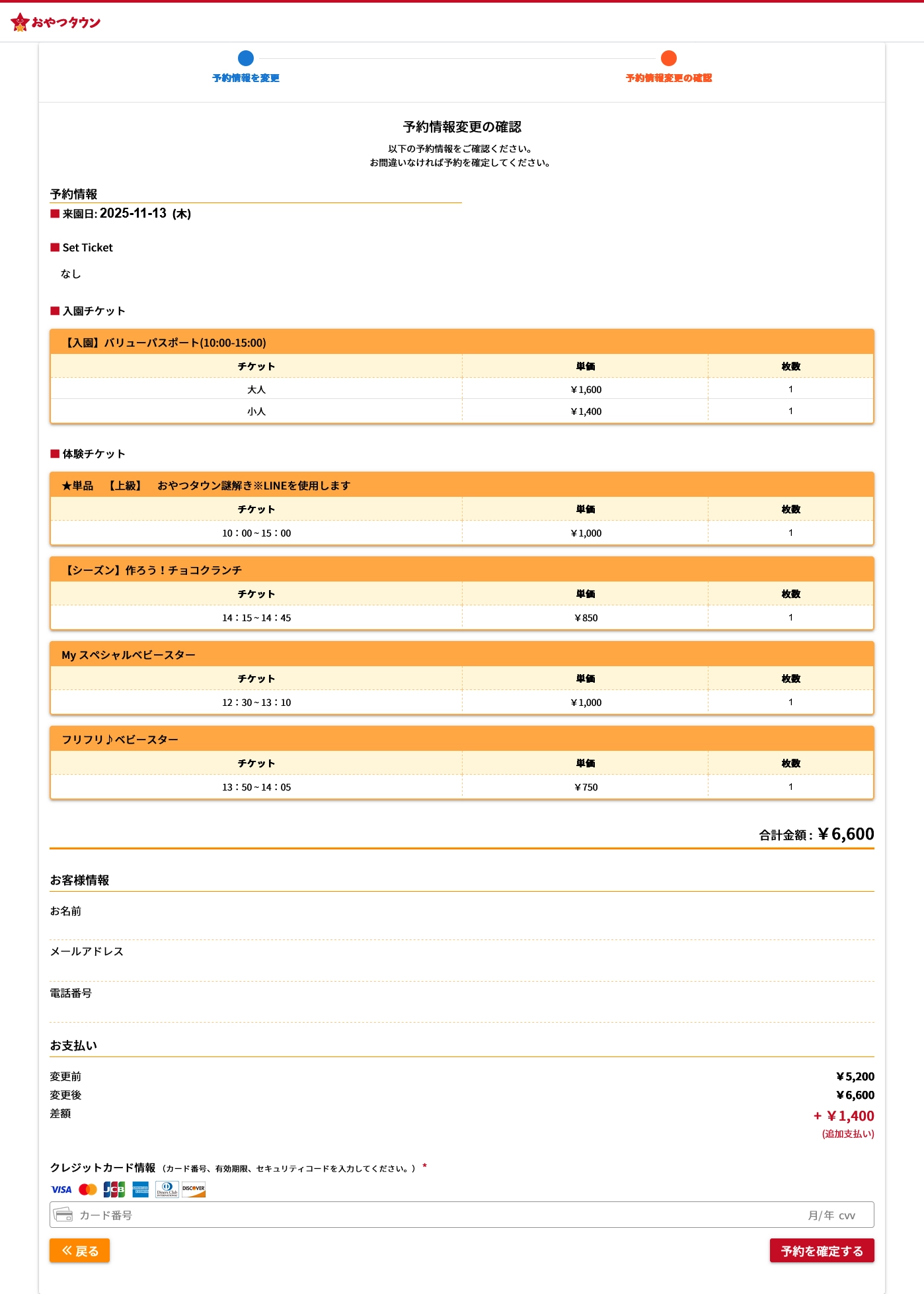 追加支払いが発生する場合は、クレジットカードの情報入力が必要です。